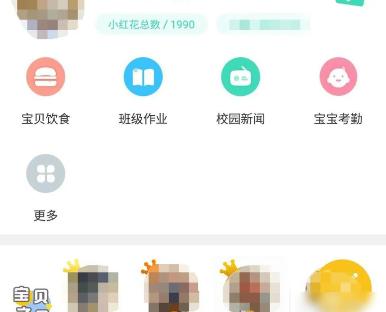 如图,目前宝贝的小红花数是1990,下方宝贝之星显示按当月小红花数排名前三位的小朋友们;并且在后方显示我们小朋友的排名,在第七位;