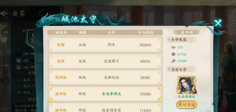 最后也提醒大家官职会略微的带来加成战功,例如每天24小时就会根据战功的排名,然后去分配官职。此时对玩家而言,就可以获取额外的福利。太守竞选是在12:00~14:00开启,如果当天战功比较高,就有机会参与竞选,收益是比较丰富的,其中就会包括武功秘籍。平时可以选择多刷取一下,成功的几率可以提升。