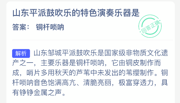以上就是山东平派鼓吹乐的特色演奏乐器是?支付宝蚂蚁新村最新答案2025年11月22日,更多精彩内容,请点击关注更新!