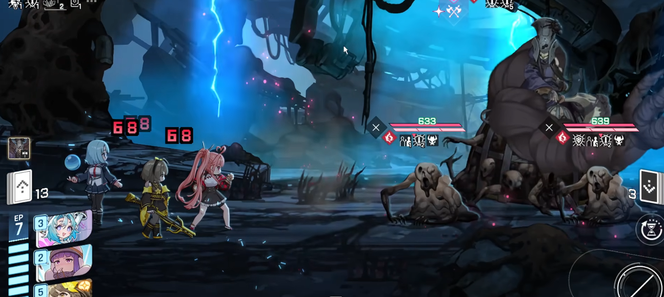 当队伍中有两名角色完成属性强化后,即可开启全面进攻。总攻期间应集中使用高倍率单体伤害卡牌,最大化输出效率。在boss残血阶段,其攻击频率会上升,出手间隔缩短,此时前期预留的治疗卡将发挥关键作用。根据实际血量灵活调用治疗手段,及时抬升生命值。同时可配合具备斩杀效果的卡牌,在敌方血量低于阈值时触发额外爆发伤害,最终通过连续输出完成收割。
