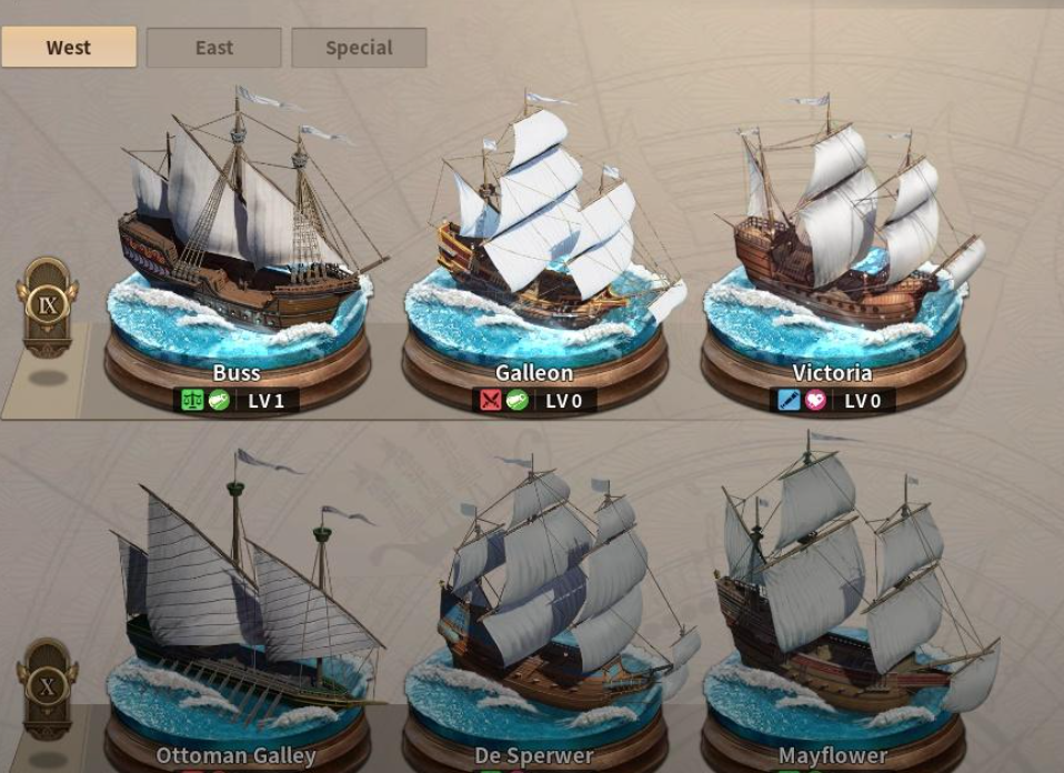 造船等级对制造十级船来说一直是很重要的。游戏中造船系统分为东方船和西方船两个系统,两者互不影响,所以造东方船等级不会提高西方造船等级,反之亦然。这就意味着玩家只能选择一条主线方向进行培养,否则因为资源分散而不能造出高等级船型。一般前期根据自身航线规划来选择系统,贸易路线玩家优先升级西方船,战斗扩张玩家更倾向东方船结构。随着造船等级的提高,十级船图也可以起到真正的作用,不仅可以制造主力船只,还可以逐步提高船队整体的装载、作战、续航能力。