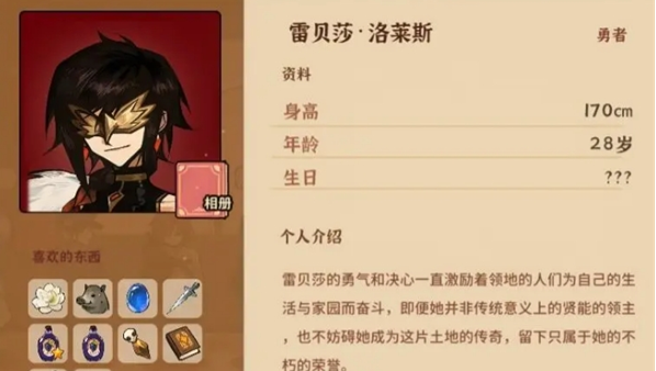 喜欢的物品:热葡萄酒(烹饪)、热葡萄酒⭐(烹饪)、蓝色的宝石蛋(冰霜峡谷鸟窝里的蛋事件)、战争药水(秋火年炼金房)、《皇家丑闻》(春火年 故事角)、奴隶的脚链(烈焰河奇怪的庄园事件)、恶魔的浓汤(烈焰河古老的山洞事件)