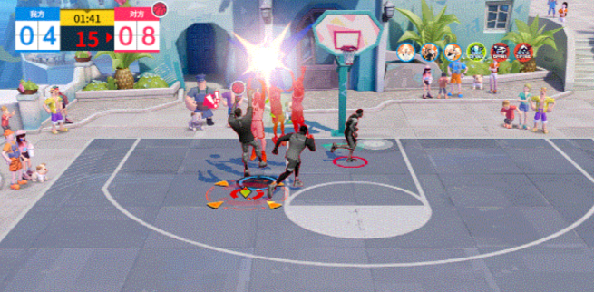 成功触发“两败俱伤”后,2米范围内的敌方单位在1.5秒内将更容易被封盖。但需注意,该技能存在代价:一旦抢断成功,自身在下一个进攻回合中的投篮命中率将会下降,属于用短期火力换取关键球权的战术选择。在进攻端,他的“进攻大旗”技能能根据队友所处区域激活对应增益——中距离区域提升中投命中率,外线区域提高三分命中概率,每次激活还能重置突破技与终结技的冷却至0秒,使其能够连续发动攻势。
