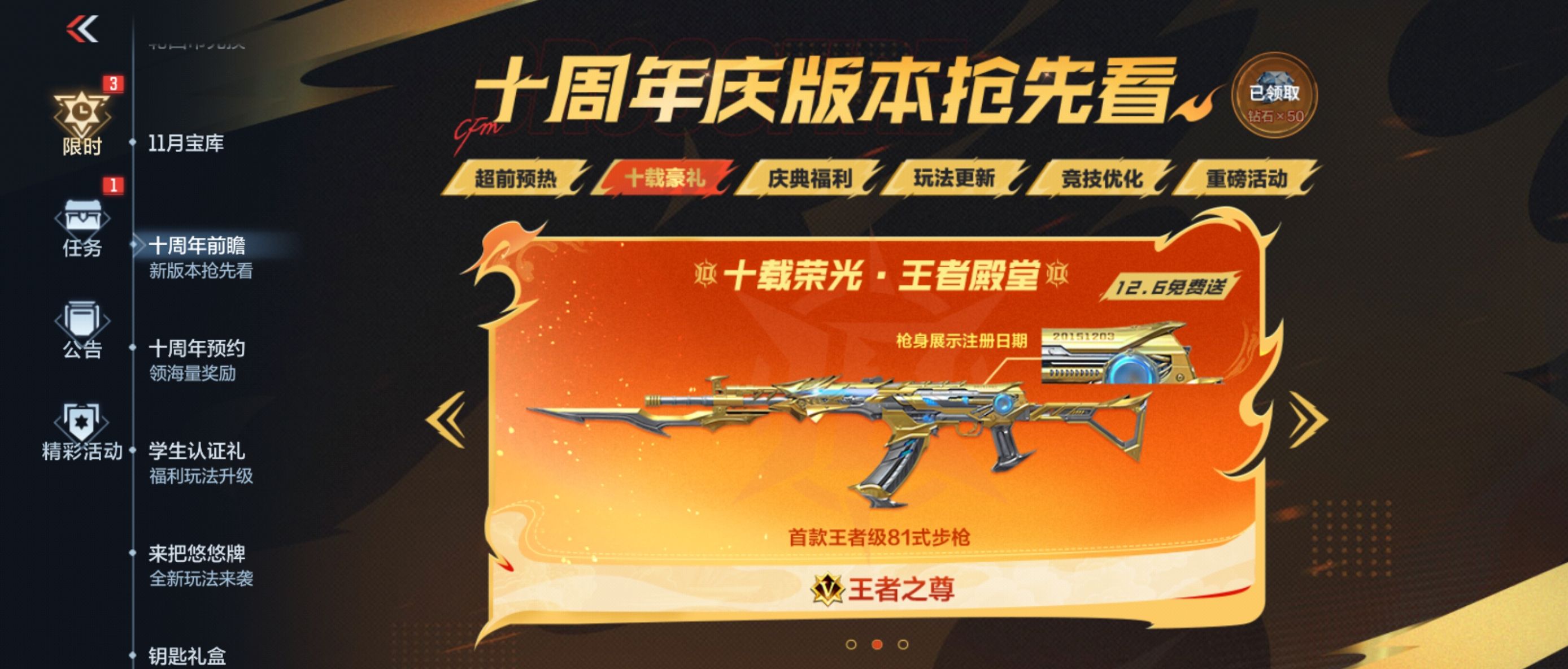 本次CF手游10周年主题活动将于12月6日正式开启,届时知名艺人大张伟将以联动角色身份惊喜登场。玩家只需参与相关活动任务,即可解锁大张伟的经典形象以及专属语音包等内容,极大增强了游戏的互动性与趣味性。除了限定角色外,活动还将推出一款极具收藏价值的武器——八一式步枪王者之尊。作为十周年特别推出的限定装备,该武器不仅拥有独特的属性加成,在外观设计和特效表现上也达到了全新高度。