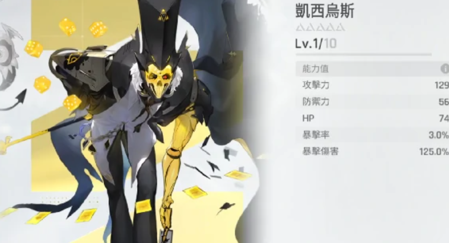 第三个就是凯西乌斯,凯西乌斯是一个过牌,属于A级,在进入慢节奏的卡组队伍中,是主要的角色,带上它能够让队伍输出更加稳扎稳打,防止翻车,尤其是这个角色在灵光一闪以及小丑卡可以费用全削。