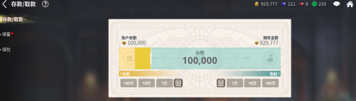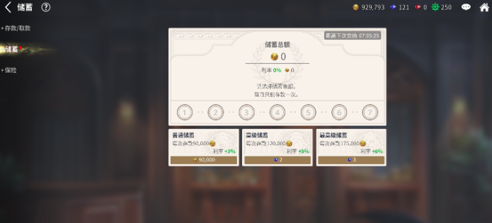 储蓄服务玩家可设定7天存储期,每一周期可获得一次汇款,储蓄期结束后还能够拿到额外的利息收益,而在定额保险服务当中,如果因为航海中的意外灾情,能够获得一定的大哥的赔偿。