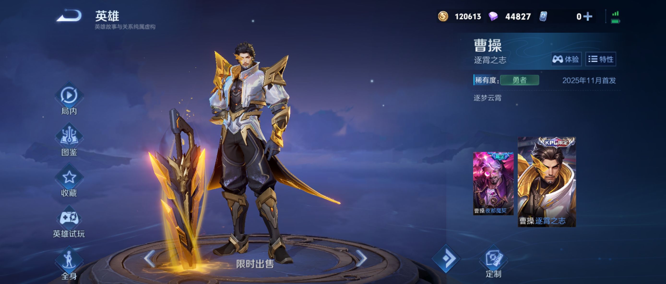 玩家如果想要获得曹操逐霄之志皮肤,那么就需要抓住活动,该皮肤需要参加限时秒杀,那就是在2025年11月7日00:00~11月13日23:59分,玩家凭借60点券的价格直接进行秒杀,目前这种方式是最优惠的。所以很多玩家除了要关注获取的方式之外,也需要找到性价比最高的方法,快速的获得曹操逐霄之志皮肤。