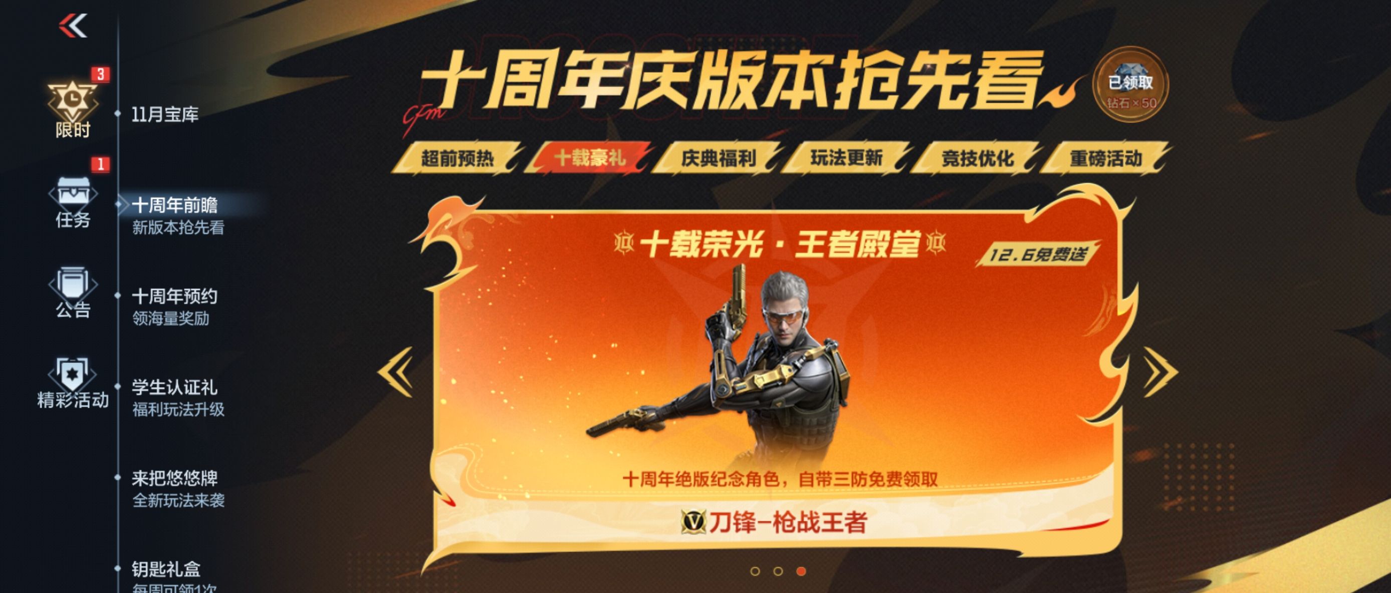 起初王炸黑市活动是从2025年9月1号开始,一直持续到2026年的6月30日,这样的话就能够给大家长时间的去体验,现如今cf手游又推出了10周年的活动。王炸黑市的活动时间正好覆盖了为期一个月的10周年活动,此时福利大幅度的上升,比如玩家已经发现这时候推出了王者级别的八一是王者之尊,另外还会自带三防绝版的角色,这样的话,能够让玩家在体验该游戏的时候,有了新的体验感。
