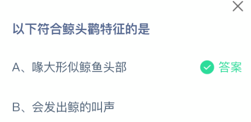 以上就是以下符合鲸头鹳特征的是,支付宝蚂蚁庄园2025年11月27日答案最新,更多精彩内容,请点击关注更新!
