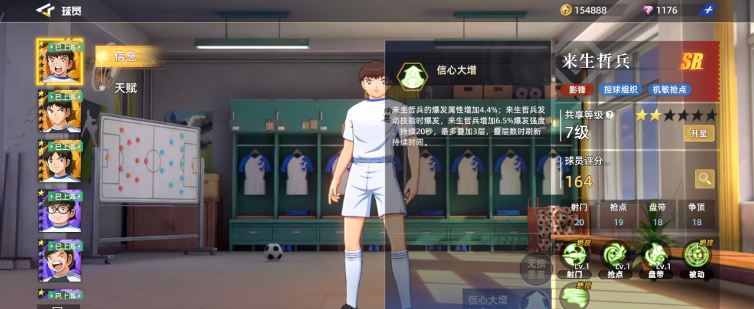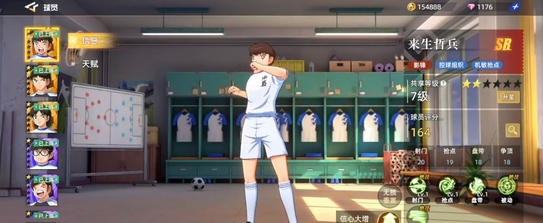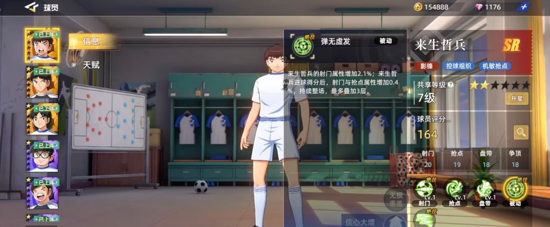 游戏当中来生哲兵是SR品质角色当中非常少见的一个定位球员,他一般是放在影锋这个位置上面用的,作为控球组织当中比较有能力的球员,后期实战里面其实用他的各种机敏动作进行抢点也是可以的,那么目前根据来生哲兵这样的定位来看各方面属性的话,在其中主要用到的就是射门20、抢点19、盘带18、争顶18这几个属性,通过评分数值来看其实整体的均衡性还可以,而球员的总体评分也有164,所以这样的评分就说明他不仅是一个有自身特性的球员,也是有不错上升潜力的一位球员,但是在整体属性六维图当中,大家可以看出他的弱点就是抢球,因为只有15的分值,所以在上面可以用来生哲兵来抢点,但是抢球的话还是用其他的球员会更合适一些。