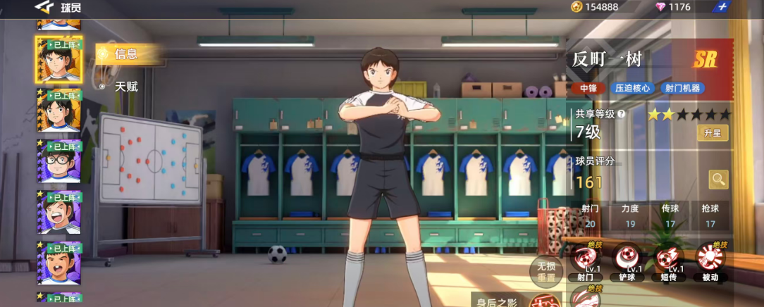 反町一树是SR品质当中的一位中锋球员,目前用反町一树来压迫核心的话也是效果不错的,而且也被大家称作是射门机器,所以代表后期这个球员在射门动作当中也是有相应技能可以使用,在现在的总体球员评分当中反町一树达到161的得分,这个得分相比一般情况下SR球员只有120左右的评分来说,高出了很多,所以才说作为中锋的话反町一树是有很大潜力的,那么在当前的六维图当中他比较出色的几项数值有射门达到20分,所以说他的射门动作后期用到的情况有很多,而另外还有力度19、传球17、抢球17的得分都是会为他射门带来足够基础支持的。
