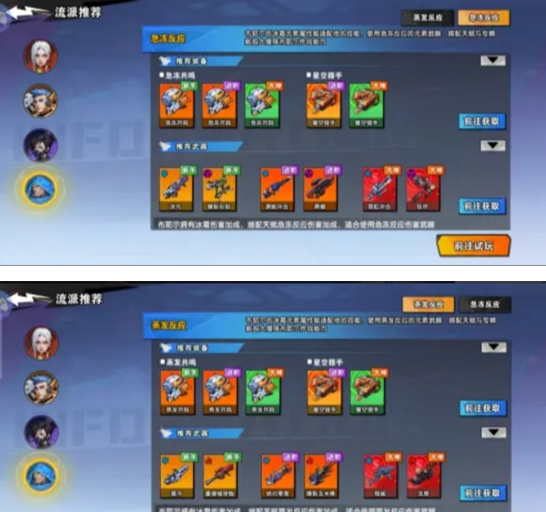ur:绝对零度,爆裂玉米棒sp:鲸鲨,龙息,流派武器核心ur:爆裂玉米棒sp:龙息,火武器配合冰技能可打出蒸发反应。