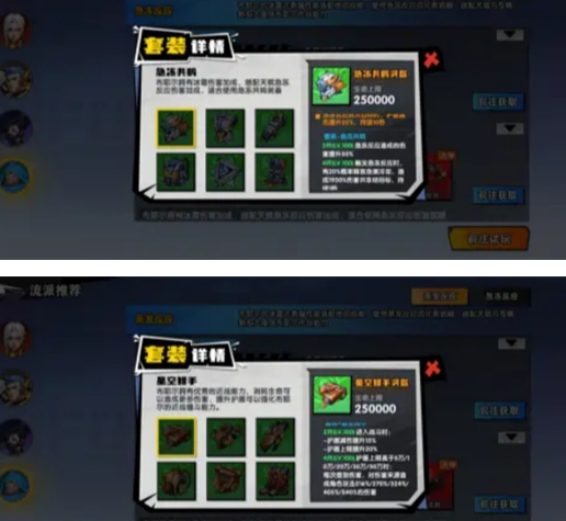 分别为两套:急冻套,星空套,推荐搭配:竞技套:急冻护手,急冻心核,星空头盔,星空衣服,星空背包,星空鞋子(与蒸发同理打反伤)副本套:急冻衣服,急冻护手,急冻心核,急冻鞋子,星空头盔,星空背包