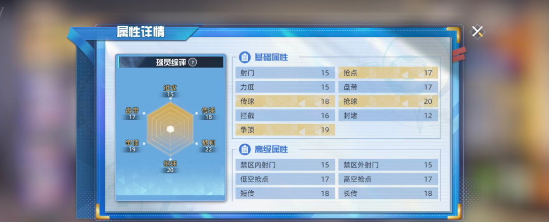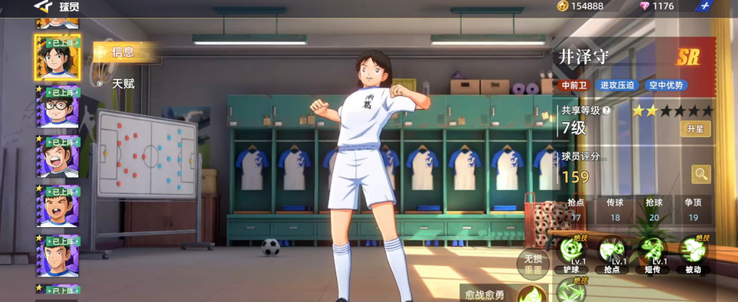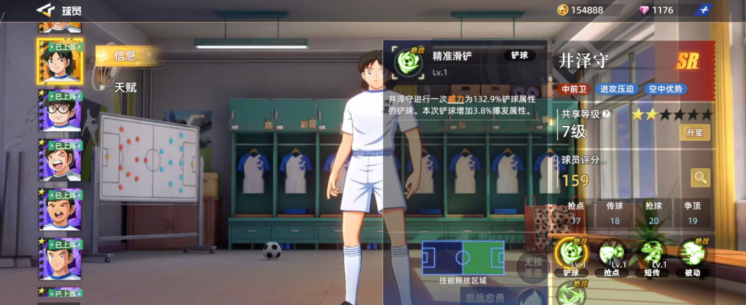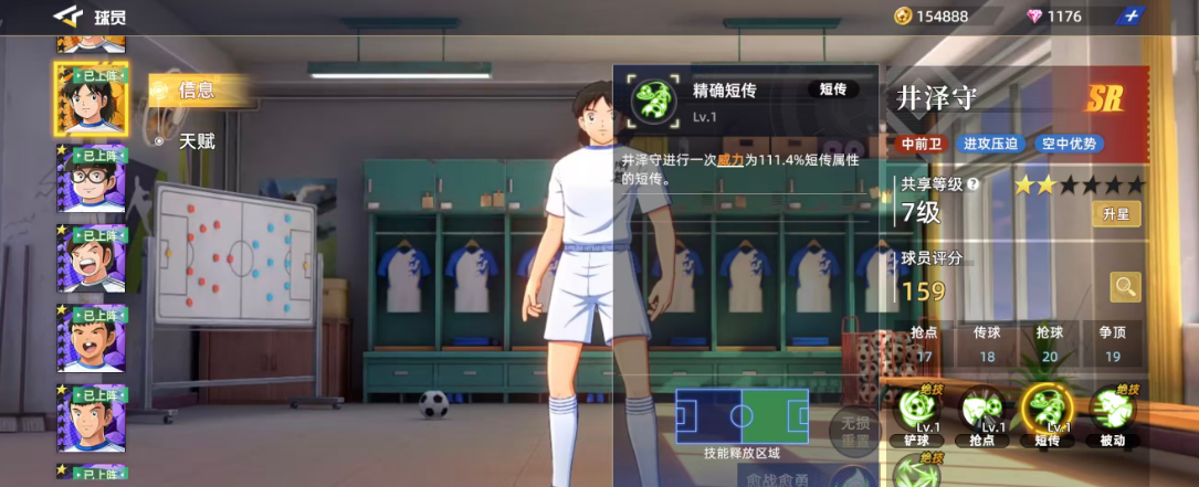 井泽守作为SR球员后期如果强度不够的话,就放在前期过渡期使用完全足够,因为在中前卫球员里面其实井泽守能够造成的进攻压迫反而是不出的,且井泽守最独特的一点是具有一定的空中优势,这一点的话基本是其他球员无法替代的,井泽守在整体的球员评分上面有159的评分,比一般的SR球员还是还要高那么积分的,在其中大家可以利用到的还有抢点17、传球18、抢球20、争顶19这几项数值,因为根据目前的六维图来判断井泽守的属性效果都是比较均衡的,当然其中最突出的是预判这项属性的分值,有22分的基础上面他做中前卫就没有问题了,其他的几个比较游优势的属性就是上面提到的这四个,所以球场上面比赛的话这几项动作都是他会常用到的。