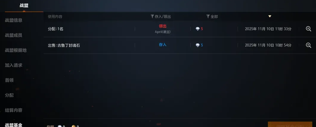根据提前设定的比例,管理出售战盟道具所获得的流通钻石,除了分红还有一部分会转变为“战盟基金”!