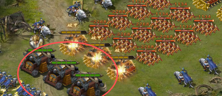 那么在兵种里面有比较特殊的一类效果,就是攻城车,攻城车的话目前在游戏当中属于兵种当中的一类特殊道具,在游戏当中可以在攻城里面为大家带来足够破防的效果,所以也算作是一类特殊兵种,大家使用这类攻城车的时候要注意他们的特点就是有足够的破防,但是自身的移动能力是不太够的,玩起来是比较笨拙,但是他们自身也有一定的防御,就是不能被敌人围攻,如果被敌人围攻的话,他可能还没有到城门下就直接散架了,而且比较怕一些远程的输出,所以大家在攻打敌方城池的时候,使用攻城车要注意,前方要是有盾兵的话,先放一些盾兵,然后第二排再放工程车,而且工程车是比较受对面弓兵克制的,所以在这里玩儿工程车的时候就要注意这一点是他的弱点。