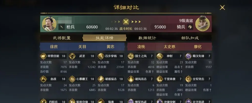 此时给关羽搭配的能力上面,大家可以给他带一些有反击技能的效果,然后配合关羽跟黄忠的话,他们自身本身就有的指挥技能,可以让队伍同时拥有了反击和指挥的两种特点,但是这两种特点大家都要注意为它搭配足够的枪兵才可以让这个阵容有足够的能力可以使用,然后徐庶放在其中的话,主要是因为他的技能效果当中可以补一些重伤的能力,而且它也可以带来威压数值的积累,所以在队伍当中它的特点也是可以利用学术的能力达到最大化的能力,如果大家没有得到关羽的话,那么这里可以替换成魏延,魏延在其中的能力比较特殊的一点来说就是阵容走的就是指挥枪的类型了,因为上面推荐的这类效果可以算是加强版的效果。