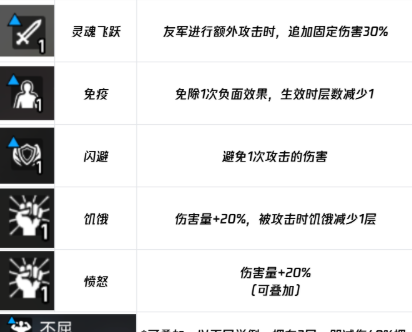 士气:伤害量可提升20%,该词条同样可以叠加使用,在结束回合战斗后会失去所有成数。