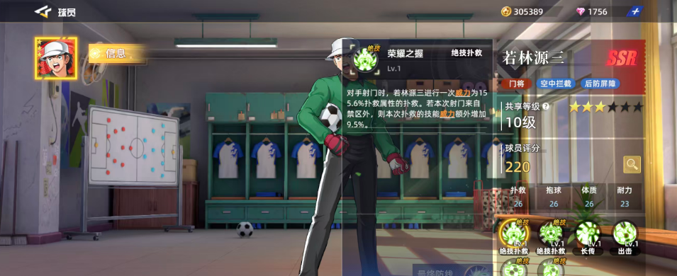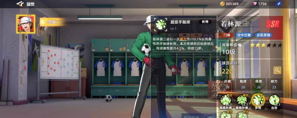 若林源三在游戏中是一位门将球员,这个定位的球员现在在红卡当中可是很难找的,所以他自然在门将能够带来的效果上面有不错的后防屏障效果,而且利用这个球员的技能大家也可以进行一些空中拦截的动作,在球员评分达到220的基础上面,大家就可以判断他的强度目前是处于比较受欢迎的程度,基础的属性效果当中抱球26、体质26,耐力23,补救26的分值都代表了可以用这些动作带来球员优势,而且在自身的六维图当中他的所有数值都超过20,目前所有属性当中基本没有低于20分以下的,所以他绝对是非常热门的一个门将选手。
