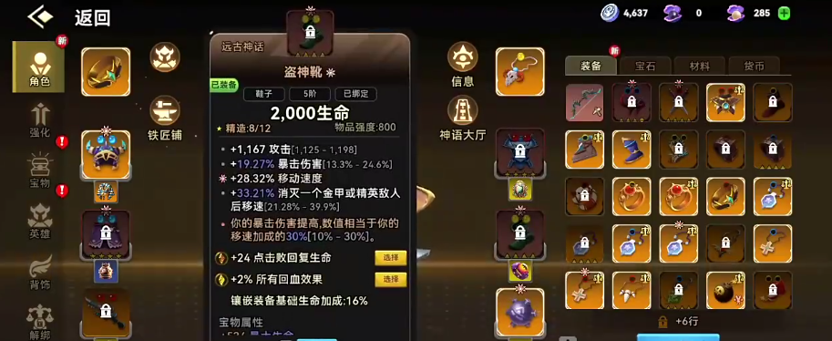 其中大部分装备都是给人物提升攻击速度的,比如说盗神靴,在其中除了攻击加成有1000多的数值之外,还可以给到他的移动速度上面增加28%左右的一个数值,其实弓箭流的话是较需要这样的移速加成的,毕竟在场内弓箭流能够带来的蓄力机制百分比还确实是比连射要高很多,那么这里大家有移速的话,就可以快速走到一个敌人比较少的地方来训练输出,为他搭配冥光战甲的话,主要就是因为其中需要的生命数值也是可以增加2000多点的,虽然这个护甲目前带来的防御数值不算特别高,但是前期的话也是可以装备使用的元素项链的话,在这里基础带来的800攻击也是非常好用,而且作为一个同为传奇品质的装备能够带来的加成绝对是不少的。