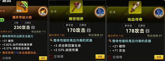武器还有防具的选择是比较有讲究的,不要去盲目的追求高稀有度。可以选择猎手学徒手枪,这对于新手来说,就是一个较好的选择,远程攻击就可以放风筝,完全不需要贴脸打伤害。而且还有11%的普通攻击加速以及37点破防。不管是打小怪还是boss输出都是比较稳定的。防具方面,自然就是需要挑选有亲和力的套装,特别是那一个外套,就可以增加313点生命。5米内有敌人,那就可以每相隔三秒,然后回1%的血,配合火枪的远程输出,边打边回血,生存压力小太多。