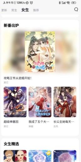 1、打开喵呜漫画App,进入应用后可以浏览多种漫画,大家可根据跟喜好选择。