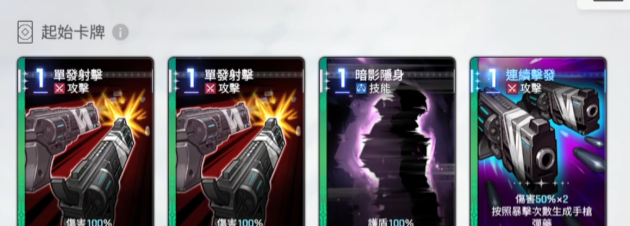 路克的强大之处在于他自身的卡牌系统是有很多卡牌区分能力的,他在自身的初始卡组当中组合就比较独特,这里他上场自身带的卡牌有包括两张造成100%伤害的普通攻击卡,以及一张消耗1点能量的技能暗影隐身,这个卡带的技能可以为路克附加足够的护盾,利用这样的一张专属卡路克也可以带来多次的连续打击效果,而在这里进行每次攻击的时候都可以造成50数值的%伤害,并能在暴击时生成手枪弹药,同时提高15%暴击率生成效果,所以路克在后期自身有足够的卡组加成的情况下也是会有更多爆发潜力的。