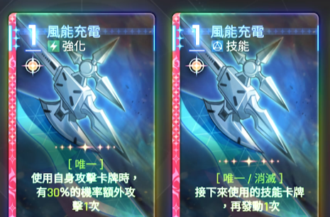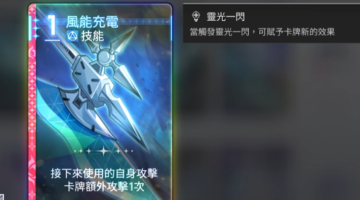 而在他的卡牌效果上面其实除开防御的效果之外,普攻伤伤都是可以用到的,风能充电这张卡属于一费技能,接下来是的自身攻击卡牌,可以带来额外攻击一次,风能充电层数能够在欧文的角色血条下显示,同时支持跨回合累计额外攻击一次,是多加了一个伤害判定,因此不会触发其卡面的额外效果,对单段高效输出卡有较高增益,对多段输出的提升其实相对于大家想要的强度来说可能是不太尽如人意的,但是这里有灵光的话,就可以带来重要的衍生效果,这就使得欧文有了比较独一无二的辅助能力。