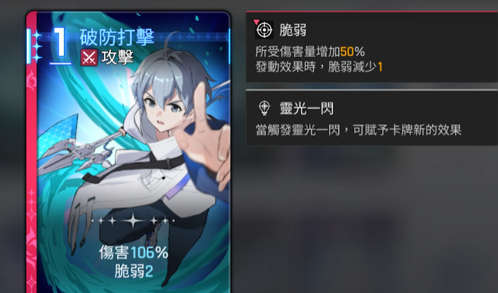 后期大家可以优先选取破防打击这张卡,风能充电实在没得选也是可以用的,疾风1击2费攻击打一次伤害,并且伤盾,一般来说也是和风能充电组合出名的攻击连招,但由于自身牌效确实相对较差,实在没牌打了可以考虑使用,这里其实大家只要了解欧文的过牌是为了什么,知道他过牌的最终目的就是为了打伤害,所以对于欧文来说,他的牌组让他可以跳过过牌环节直接打伤害,在其他C位暖机和看机制的时间,欧文就已经把伤害打完了,同时和弃牌队较好的联动让欧文也不用太过于追求高速卡组。