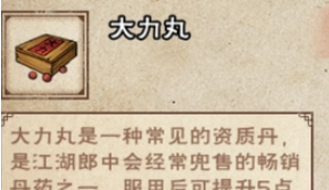 效果:能够增加5点臂力资质[每位角色仅限服300粒]。