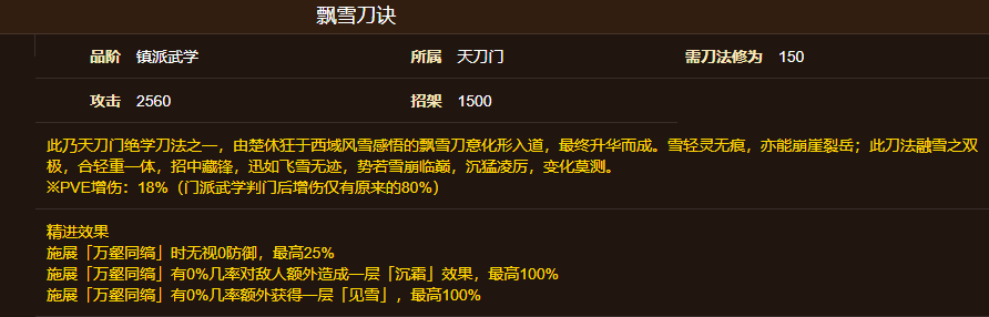 副本/BOSS战:飘雪刀诀的流血效果和稳定输出更易压低血线,适合持久战。