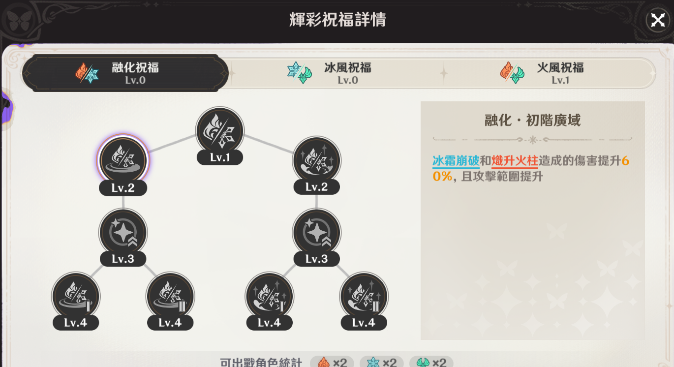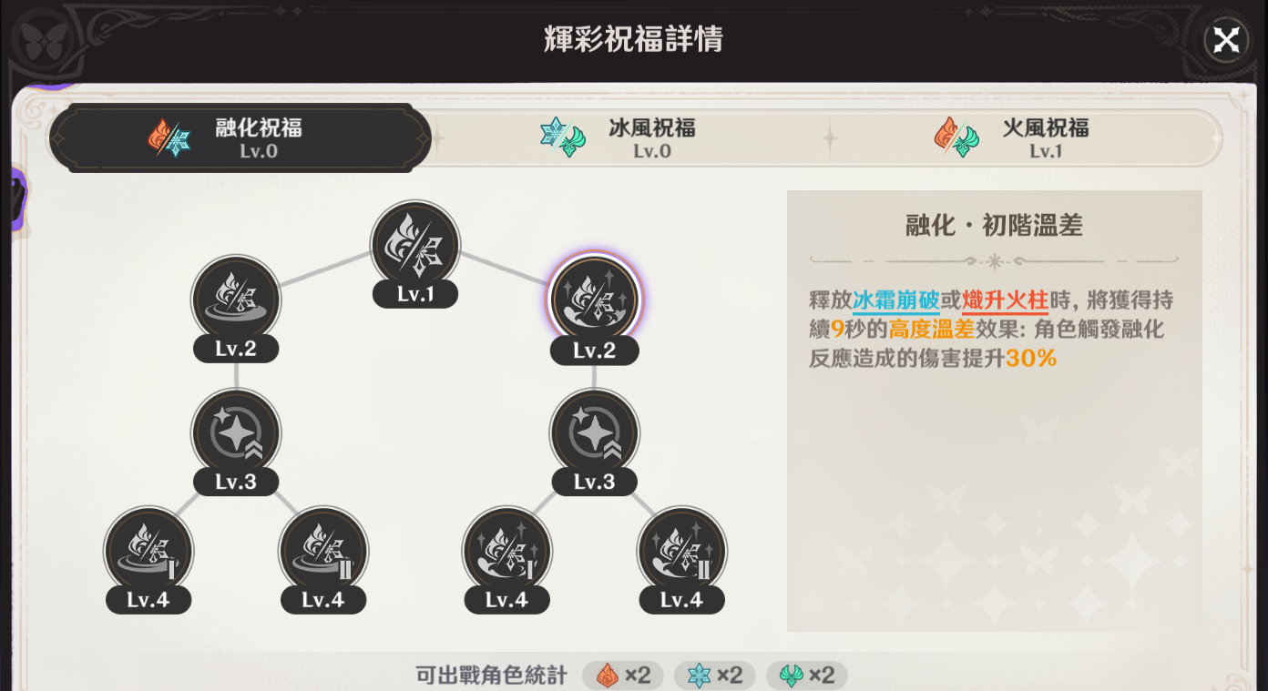 比如这次的火冰风,初始的后台冰角色不多不好触发融化,此时可以考虑用风系来染色触发。