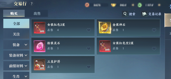 进入交易行的方法很简单,玩家只需要点击交易按钮,就可以进入到核心的交易区域。这里也会分成核心的板块,可以满足不同的交易需求。玩家想要直接入手所需的物品,在购买页面就有清晰的划分。从39阶神装,然后到前缀的材料,全部都能够找到。如果目标明确,就可以选择右上角的搜索功能,具备精准的定位,根本就不需要在商品中慢慢的去挑选。同时交易记录还会完整的留存近期购买的轨迹,方便查询过往的交易明细,可以避免重复消费。
