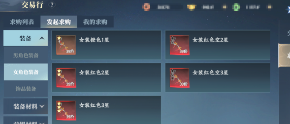 需要注意的是,交易行有几个很重要的规则。商品成功交易之后就会触发冷却期,持续到第2天的零点,在这个过程中就没有办法交易。大家一定要合理的规划时间。交易行内消耗的仙玉并不会参与仙玉消耗类的活动,并且专属的仙玉,不能够作用于购买操作,建议一定要提前的确认,以免交易受到影响。在交易行中,如果没有找到自己所满意的商品,也可以进入到求购专区,这里就是不二选择。进入求购列表,选择对应品类的道具,就可以直接发起求购需求,静静的等候其他玩家的响应。