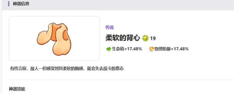 柔软的背心对于坦克角色来说,是一个专属的武器,有物理防御加成,还有17.48%的生命值。佩戴者受到的伤害可以减少10%还能降低队友所受到的伤害。组队副本还有高难度挑战中,就成为队伍的稳定器。玩家一旦在拥有之后,那后续真的无需过于的害怕,就算长时间战斗,都会有良好的状态。