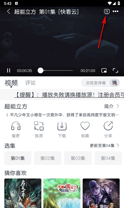 猫放时光app怎么投屏,用户在本站下载安装好软件,点击手机桌面上的图标,打开app,在进入app后,选择要投屏的影视,按照图上的点击上方投屏即可。
