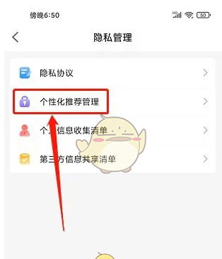 进入隐私管理界面,点击【个性化推荐管理】。