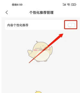 进入个性化推荐管理界面,点击【内容个性化推荐】右侧按钮关闭。