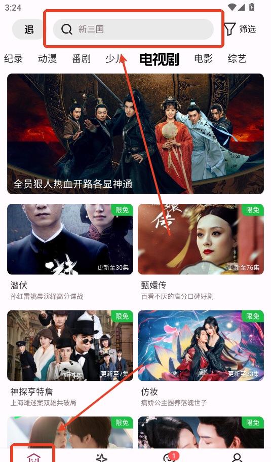 A次元app怎么搜索视频,用户在本站下载安装好软件,点击手机桌面图标,打开app,在首页点击上方搜索框,输入你要搜索的影视剧名称,即可完成搜索操作。