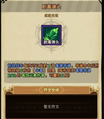 以毒爆溅射、剧毒弹头为技能核心的流派,在伤害输出方式上以普攻为主、技能为辅,搭配上幽绿魅影套所带来的毒蚀元素伤害提升效果和毒蚀类技能伤害倍率加成,使得角色每次进行普攻时,都能打出非常夸张的毒蚀伤害。而且该流派只需点出剧毒弹头,就能让角色在前期具备很强的战斗力,特别适合开荒,后续还能通过武器和符文搭配再次提高毒蚀伤害的上限,装备迭代也极为平滑,若各位想让自己的枪炮师以一个极为平稳的方式过渡到后期,可选择此流派。