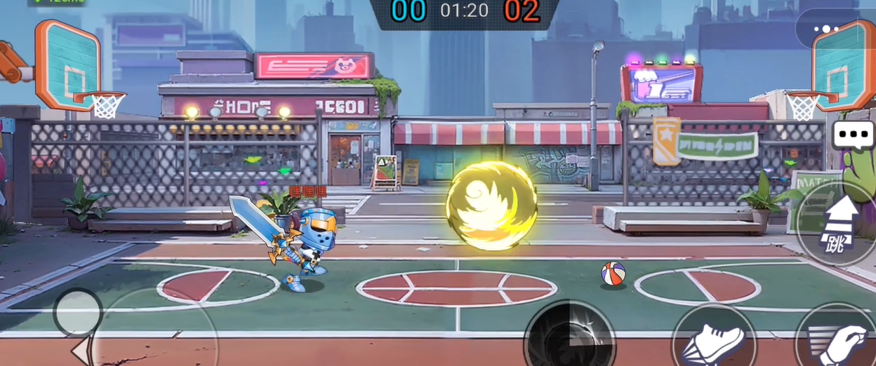 主动技能可以使它缩成一个球体,然后向敌方的位置弹出,以撞击反弹的方式,很快的命中敌人的具体所在位置,将他击退后方能够获得胜利。被动技能需要提升至5星才能够扩大伤害的范围,在防守的过程中将会很快的提升实力,使玩家处于一个暂时安全的状态。多个技能在使用后可以产生连招组合效果,两次高跳后可以拦截高空中传来的篮球在空中拍击时都可以截下对手中的篮球,这一项操作也是实力的象征。