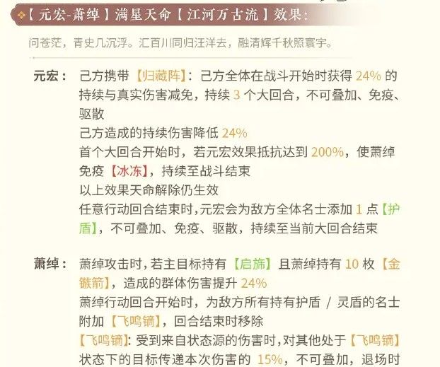 己方携带【归藏阵】:首个行动回合开始,使全场名士