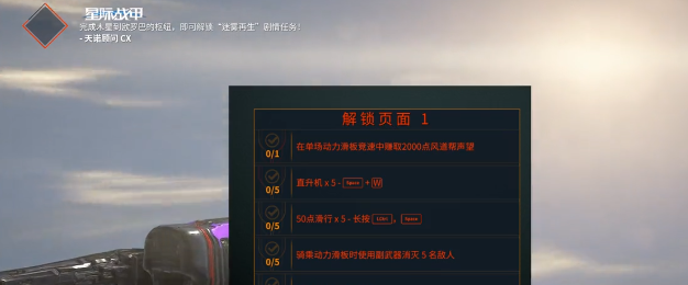 第1个任务是单场动力滑板竞赛,赚取2000点声望,先切出小米兰,选用动力滑板启动器,打开地图之后,随便标记一个图标,切换翅膀飞过去即可。每一个紫色图标的位置全部都会有一个负责滑板竞赛的阿布,跟他互动之后就可以开始比赛。左侧会提示需要穿过的门数量,还有时间限制,每穿过一个门就会增加时间,只要用方向键还有跳跃,控制好滑板,别错过这一个门就可以拿到2000个声望。第2个任务就是完成5次直升机动作,所谓的直升机就是滑板特技。重点是连贯的操作,中间不要松开,练习几次之后就会熟练。
