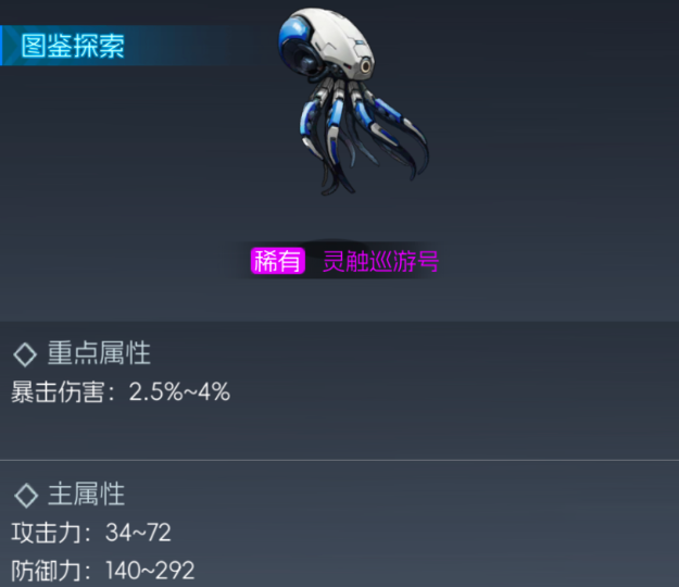 爆伤型宠物代表灵触巡游号,结核心属性为放大爆发,他可以更加专注于暴击率的提升,并不是直接增加暴击概率,当角色触发暴击模式后,可以对伤害上限进行大幅提升,如果玩家已经拥有一定的暴击率基础时,那么搭配这只宠物可以直接使暴击率翻倍,对于一些高防御值的boss或者是精英,可以直接打破敌方的防御壁垒,真正实现一击破局,达到高效质变效果,进而让整体的输出能力再上一层楼。