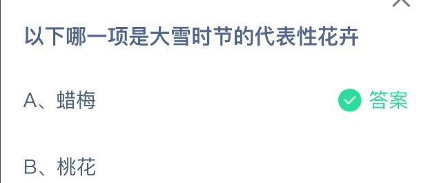 以上就是以下哪一项是大雪时节的代表性花卉,支付宝蚂蚁庄园2025年12月7日答案最新,更多精彩内容,请点击关注更新!