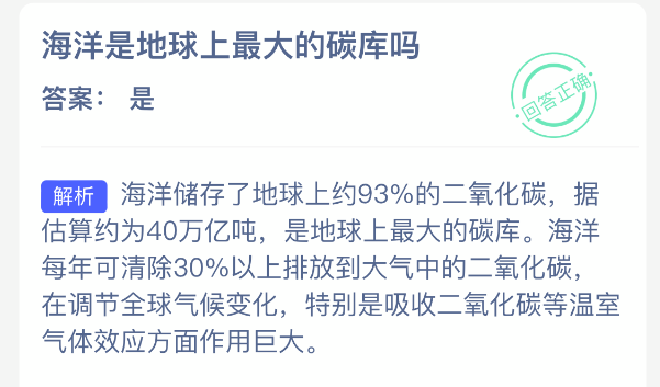 以上就是海洋是地球上最大的碳库吗?神奇海洋今天答案最新2025年12月6日分享,更多相关攻略内容,请点击关注更新!