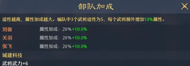 阵容搭配上面也有讲究,同阵营的武将组队能有10%的属性加成,虽然看着不多但积少成多。所以前期选武将的时候尽量往同兵种方向凑,最好能凑出3个S级适配度的阵容,这样属性加成就能拉满。每个武将达到S适配度都会额外增加10%属性,三个加起来提升就很明显了,配合兵种克制关系,伤害输出能高出不少。