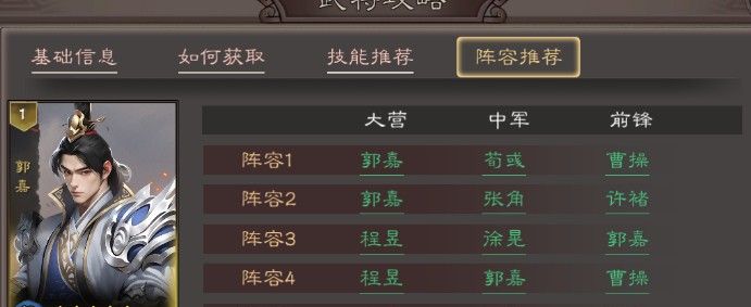 《三国乱世霸王》郭嘉配队推荐: