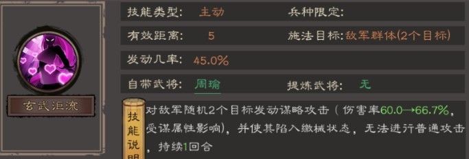 他的自带技能“玄武洰流”兼具群体谋攻伤害与缴械控制,是吴国谋攻队的输出与控场双担当。
