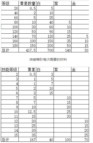 好,现在我们了解了每级需要多少材料,让我们看看升级到200级需要什么吧!
